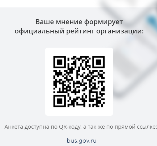 Вы можете оставить мнение о нашей организации. Чтобы оценить условия осуществления образовательной деятельности наведите камеру Вашего телефона и отсканируйте QR-код.